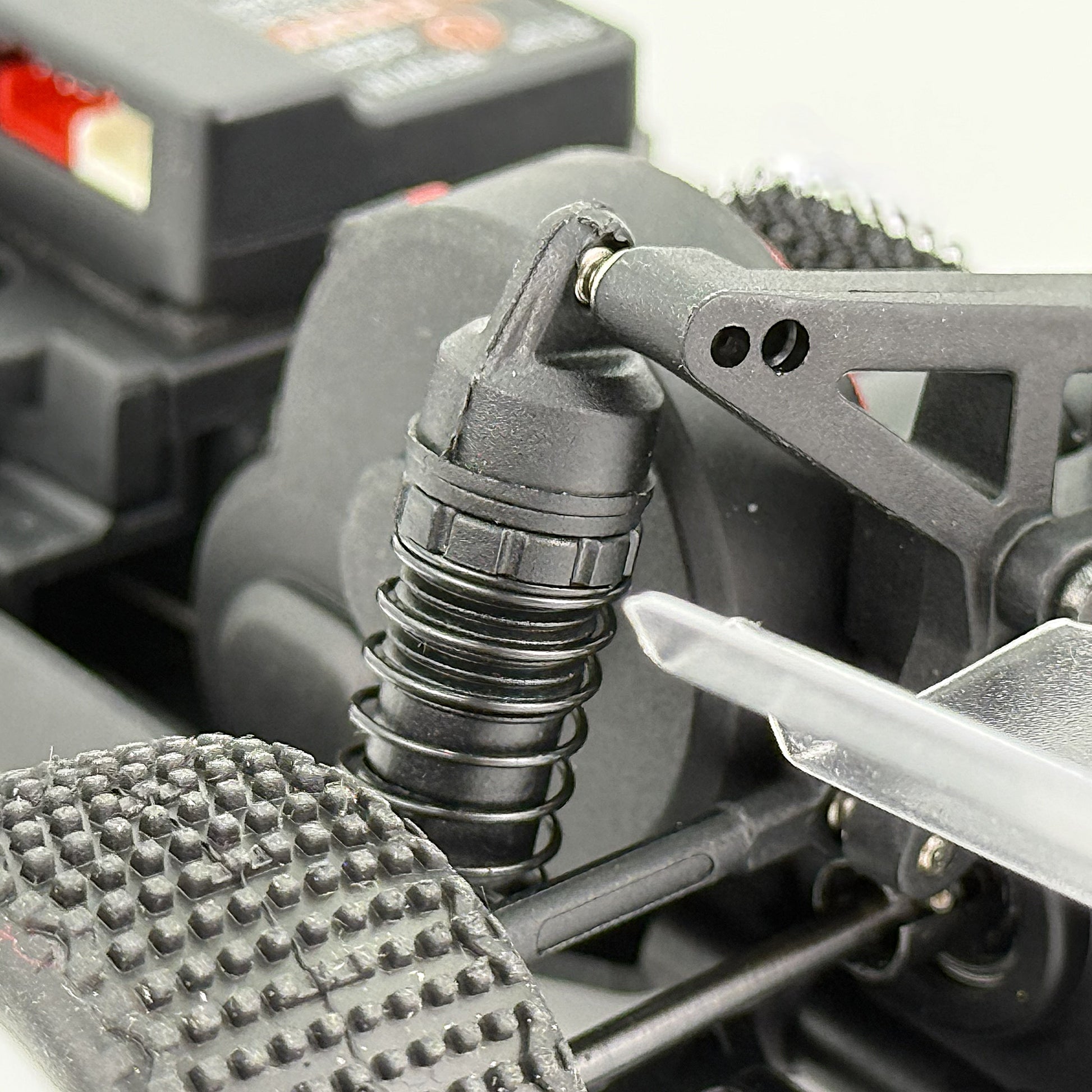 Small refinements also indicate an increase in performance. A revised transmission center gear no longer requires a break-in period. Slightly lighter shock oil gives a more confident landing off jumps and absorbs small bumps better. To top it off, a new V-Block tire design works just plain works on dirt, concrete, asphalt, carpet and foam surfaces. No more chasing the tire design for a specific surface. And lastly, a taller ball stud on the steering rack side of the drag link has been installed. No more popping off the drag link or having any unwanted friction in that area with the new design.