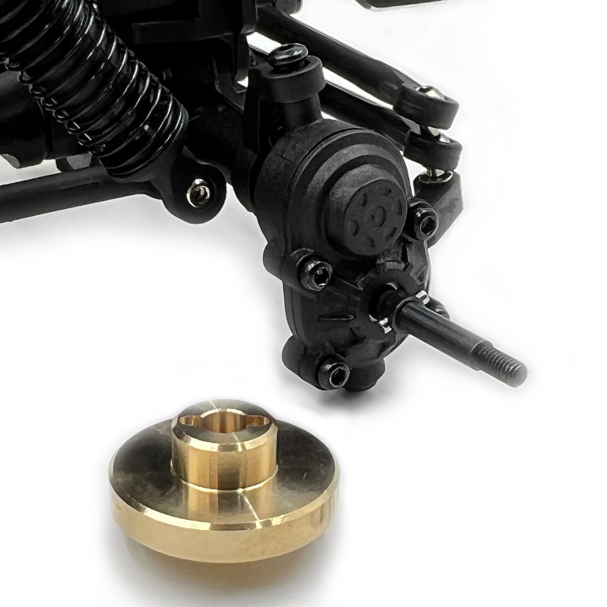 - Oversized brass wheel hexes included (Front axle Only)